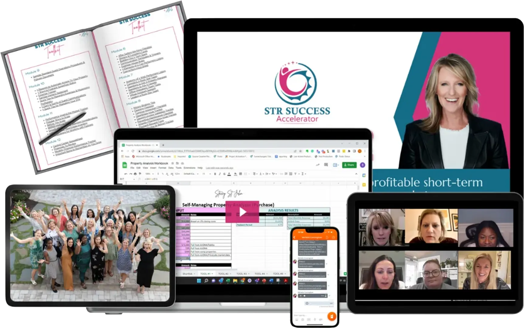 The STR Success Accelerator is a comprehensive training, mentoring, and mastermind program designed to guide you through every aspect of building a successful short-term rental business. Here's a breakdown: